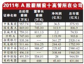 A股高管薪酬前十金融业狂取6席 麦伯良957万居首