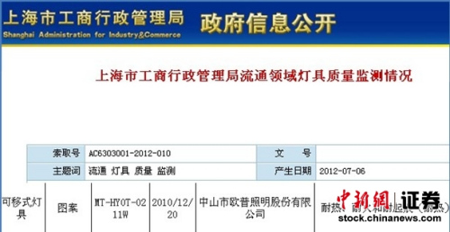 欧普照明2009年后多次登地方质量抽查不合格名单