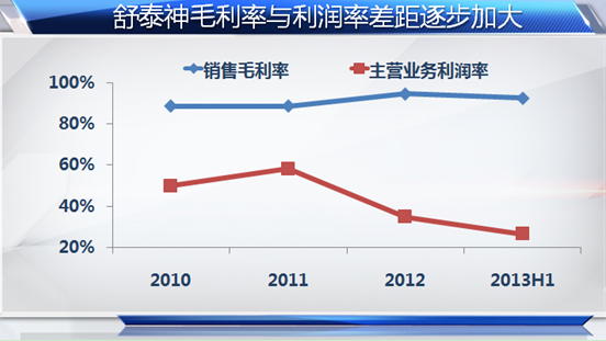 (图1:舒泰神毛利率与利润率差距逐步加大)