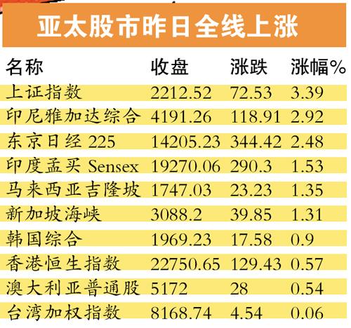 A股暴涨亚太市场沾光