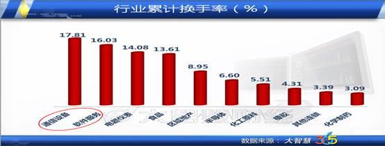 参与互动(0)新华网消息 9月9日上证指数放量大涨3.39%,一举突破了半年线以及年线的压力,收出一根大阳线。创业板表现明显弱于主板,下跌0.53%。在此背景下,大宗交易成交金额相比上一个交易日出现成倍增加,共成交15.95亿元。从换手率来看,大宗交易最活跃的股票主要分布在通信设备和软件服务这两个行业,行业换手率分别为17.81%和16.03%,其中表现最活跃的股票是海兰信,它的换手率达到16.03%。
