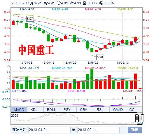 实际上,在中国重工发布定增方案之前资本市场已经先行一步。军工板块中特别是涉足航母配套设备生产的相关个股已连续多日上涨“迎接”中国重工复牌。另外,长江证券分析师对大智慧通讯社表示,中信证券持有中国重工5.8亿股,占其总股本的3.96%,以停牌前收盘价计市值共26.22亿元。中国重工复牌首日涨停,为中信证券贡献2.6亿元利润,约合每股收益0.024元。也许正是因此,昨日中信证券强劲上涨并最终报收于涨停。