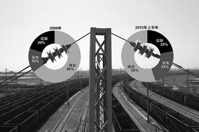 持续优化煤、电、运业务结构和布局是中国神华2009年以来一直坚持的战略,公司2013年中报显示,上半年,中国神华煤、电、运板块的经营收益比例已经由2009年的65∶15∶20,调整为了55∶23∶22。这意味着在煤市低迷的今年上半年,中国神华的利润越来越多地依靠铁路、港口的运输业务和电力业务来支撑。