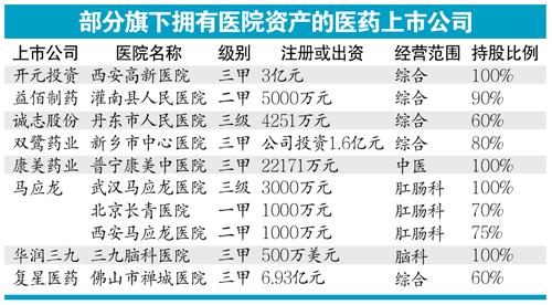 此外,记者还留意到,康美药业收购了普宁康美中医院、华润三九旗下则有三九脑科医院、双鹭药业拥有新乡市中心医院、开元投资收购了西安高新医院等。