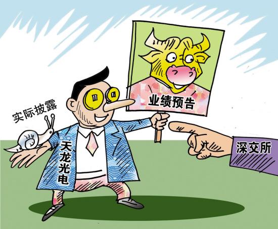由于上述业绩大变脸,9月4日天龙光电还领到了监管层的罚单。深交所称,鉴于公司业绩预告、修正前的业绩快报净利润预计数额与2013年度实际数额差异值为1.4亿元、1.36亿元,差异率为-107.69%、-104.68%,且业绩快报的修正公告严重滞后,决定对公司给予通报批评的处分,对公司董事长冯某和时任总经理陈某给予通报批评的处分。