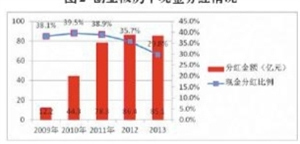 与此同时,创业板公司坚持较高的现金分红比。从2009年至2013年的五年间,创业板公司合计分红306.3亿元,占累计实现净利润合计额的35.1%,高于深市平均分红比例(图2)。