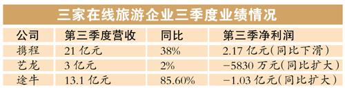 携程第三季净利同比降42% 途牛、艺龙亏损