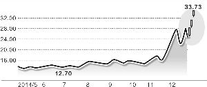 作为纯寿险龙头,中国人寿股价曾在2013年至2014年上半年极度低迷,2014年下半年随着市场二八风格逐渐成功轮动,自11月20日开始,中国人寿开始掀起一轮快速上涨行情,一个多月股价翻番,特别是最近三个交易日连续涨停,尽显龙头股风范。中国平安等其他3只保险股近日也非常强势,但涨幅稍逊中国人寿。
