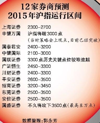 面对即将来临的2015年,券商的股市预判又来了。