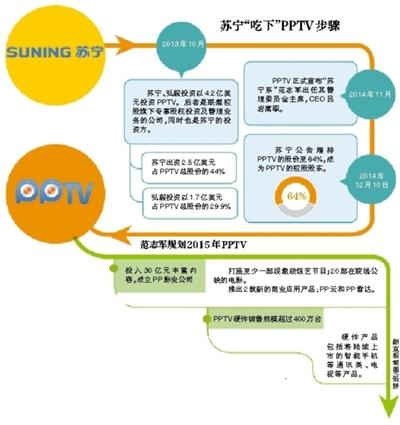 苏宁控股PPTV势在必行。“其实,(2014年)3月份的调整并不理想,还是由各自利益在推动。大体方向虽然相对一致,执行上却有偏差。”接近PPTV的人士称。