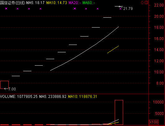 新华网消息 周三早盘国信证券继续一字涨停,每股报21.79元,这是该股上市后连续第11个交易日涨停。