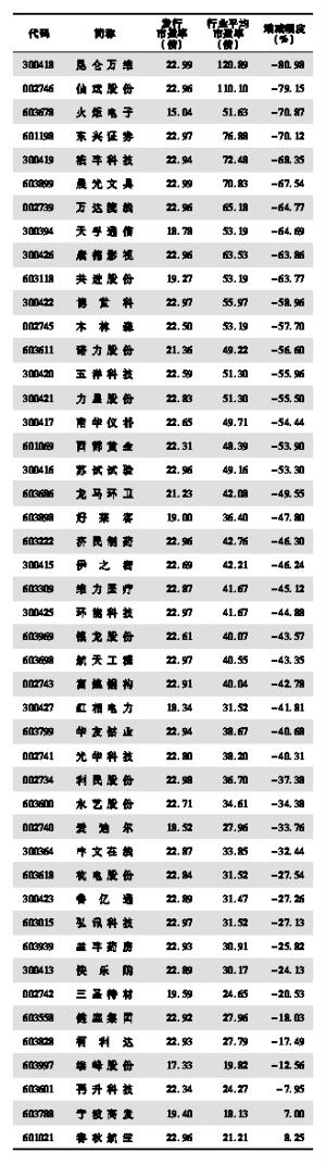 新股发行市盈率较行业均值增减排名