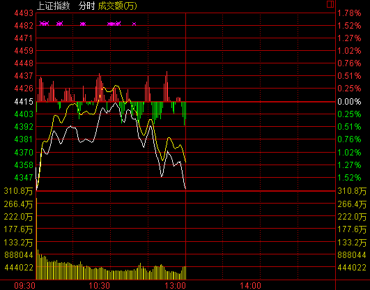 午盘:沪指跌1.76%失守4400点 金融股领挫