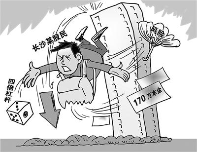 2015年6月10日晚上10点左右,长沙市一名32岁男子从小区的22楼坠亡。初步调查显示,该男子坠亡与他用4倍的融资杠杆重仓了一只股票,在股票两个跌停之后赔光了本金有关。知情人介绍,侯先生亏了170万元,并用融资杠杆翻了4倍。侯先生赔光了之后,他妻子跟他吵了一天还继续吵,于是他就承受不住了。市场人士估计,男子的融资杠杆可能来自场外配资。