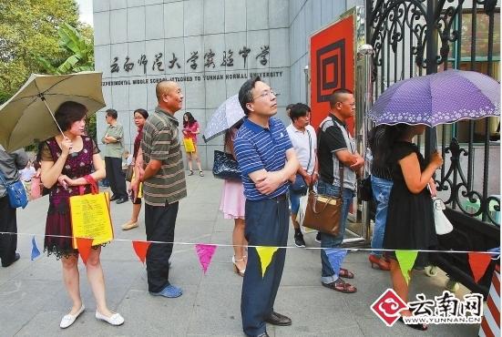 昆明中考首日仅零星家长选择陪考 玩着手机聊股市陪考家长很淡定