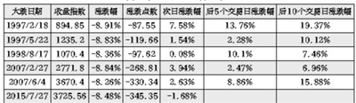 据北京青年报记者统计,自1997年至2015年间,大盘跌幅超过8%的情形共出现6次,其中五次次日、后5个交易日和后10个交易日表现均为正值。唯有本周创出了新纪录,继前一日大跌8.48%之后,尽管官方在不同场合表态安抚,但次日大盘仍然为负值,其后续走势并不明朗,乐观预期被大幅削弱。