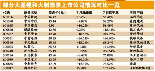 一位券商人士对广州日报记者指出,上半年固定资产投资虽然表现不错,但增速依然不高,还要增加筹码,“最近铁路投资放开,可能就是个很好的开始。”中金公司分析师廖明兵也称,铁路、轨交、地下管廊、机场、水利、市政、棚改等有望成为未来投资的重点发力方向。因此,如此相关的基建、材料、专业设备等上市公司最为受益,如中国铁建、中国中铁、中国建筑、永贵电器、辉煌科技、冀东水泥、葛洲坝、中天城投、青龙管业、隧道股份等。