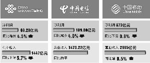 从净利润情况来看,除了中国联通实现了4.5%的同比增长外,中国电信、中国移动的业绩均出现下滑,不过利润减速有所放缓。中国电信的财报显示,上半年净利润为109.80亿元,同比减少4.0%,服务收入为1470.22亿元,同比持平。而中国移动净利润也同比下滑0.8%,上半年净利润为573亿元,通信服务收入为2995亿元,同比增0.5%。中国联通上半年实现营业收入1447亿元,同比下降5.7%;净利润69.20亿元,同比增长4.5%。