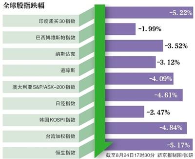 新京报讯 (记者刘素宏)8月24日,不仅A股遭受重创,美股、欧股、亚洲股市以及大宗商品价格也都纷纷大跌,其中大宗物品价格创下16年来新低。