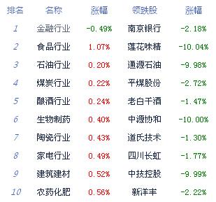 A股市场板块及个股涨跌幅排行