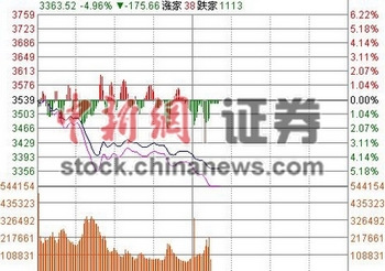 截至发稿,上证综指报收3363.52点,跌175.66点,跌幅4.96%,成交2161亿元;深成指报收11845.2亿元,跌819.70点,跌幅6.47%,成交3284亿元。(中新网证券频道)