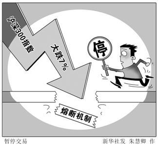 周一早盘,沪深两市低开低走。中午13时13分,沪深300指数跌破5%,首次触发熔断机制。按规定,两市暂停交易15分钟。