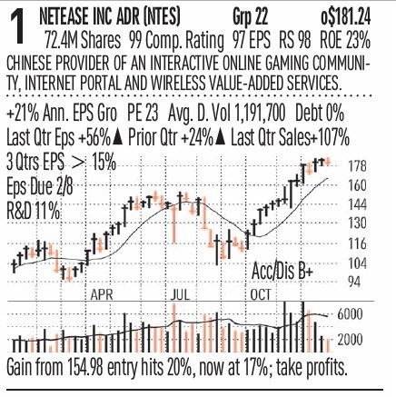 中新网1月5日电 《投资者商业日报》(Investor's Business Daily)50强股票榜单本周出炉,网易(NASDAQ:NTES)居榜首,Facebook排名第七。同期入围的企业还有:AMN Healthcare、 Manhattan Assoc等。在2015年的最后一个交易日,网易(NASDAQ:NTES)股价上涨0.33%,报收于181.24美元,股价全年累计涨幅超80%。