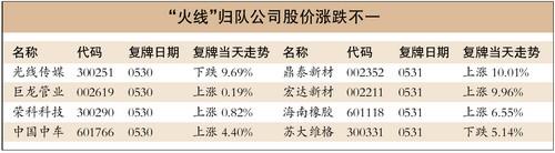 针对A股上市公司的停牌乱象,沪深交易所5月27日晚间公布了上市公司重大资产重组的停牌时间不超过3个月等新规。5月30日开市,以光线传媒、巨龙管业等为首的十余家停牌公司组成复牌大军,其中不乏一些沉睡超过百天的上市公司。昨天又相继有鼎泰新材和宏达新材等公司复牌。不过,复牌大军们的股价走势却是涨跌不一,既有跌停后不断走低的,也有恰逢市场反弹强势涨停的。