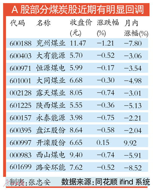 在二级市场上,多数煤炭股近期跌幅超过10%,短期存在反弹预期。期货市场上,焦炭等黑色系合约已经率先反弹。中泰证券分析师刘昭亮认为,当前市场远未完全反应基本面反转的预期,对优质个股,回调即可买入。其中,弹性较大的焦煤需要重点关注。记者对比发现,在A股市场,焦煤类上市公司主要有西山煤电、潞安环能和美锦能源等。而存在国企改革的阳泉煤业、兖州煤业、陕西煤业等也值得留意。(记者张忠安)