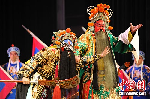 10月22日晚间,“中国经典昆剧展演”在湖南郴州开幕。来自侯少奎、蔡正仁、张洵澎三大昆剧“泰斗”,王芳、林为林等十朵中国戏剧“梅花奖”获得者以及中国七大昆剧院团将在22日至24日间展演《牡丹亭》等经典昆剧。昆曲起源于江苏昆山,她与古希腊悲剧、印度梵剧并称为世界三大古老剧种,而后两剧种皆已消失,唯中国昆曲独存。2001年5月18日,联合国教科文组织宣布中国昆曲艺术为世界首批“人类口头和非物质遗产代表作”。图为经典昆剧《单刀会》。中新社发 刘柱 摄