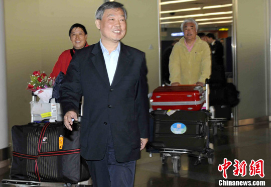 2月22日,中国国务院侨办党组成员、秘行司司长熊昌良率领的“文化中国·四海同春”赴南美洲艺术团结束在智利圣地亚哥,阿根廷布宜诺斯艾利斯,巴西里约热内卢、圣保罗的访演后载誉抵达北京。中新社记者 张勤 摄