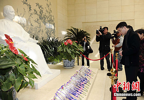 3月27日,由中国国民党青工总会会长何庆纹率领的中国国民党青年工作总会“辛亥革命百年访问团”一行来到北京宋庆龄故居参访。中新社发 刘震 摄