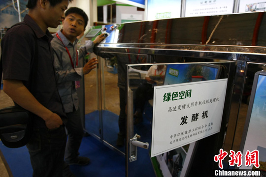 5月19日,一种高速发酵天然有机垃圾处理机亮相“第十四届中国北京国际科技产业博览会”。该处理机可将厨余等有机垃圾经过发酵处理,变为有机肥料、二氧化碳和水,实现垃圾的再利用。中新社发 富田 摄