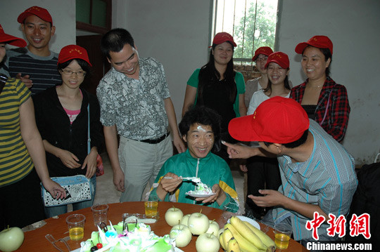 因出生在中秋节,今年46岁的残疾农民取名为陈中秋。9月10日,在湖南省安仁县排山乡敬老院里,安仁县的青年志愿者们为陈中秋买来了鸡鱼肉和月饼,并订做了一个生日蛋糕。生日宴上,志愿者点蜡烛、唱生日歌,陈中秋在祝福声中闭上眼睛许下了美好的愿望,吃下了甜蜜的蛋糕。