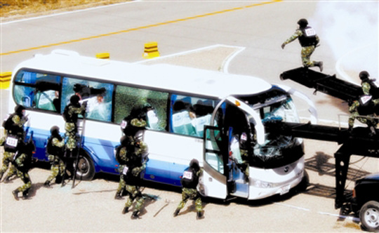 参与互动(0)公共汽车反劫持演练。