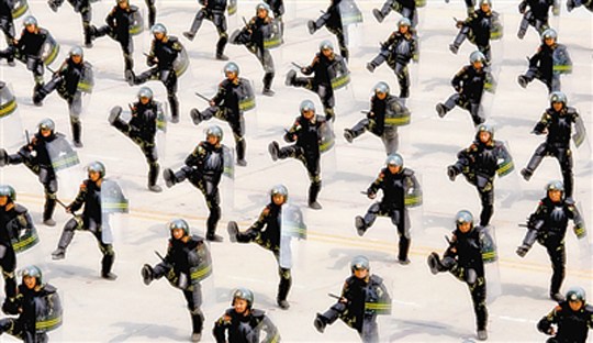 参与互动(0)警棍盾牌术演示。