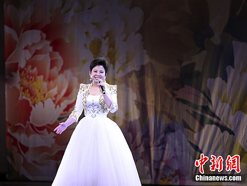 参与互动(0)图为著名歌唱演员董文华在现场表演。中新社记者 沈晨 摄