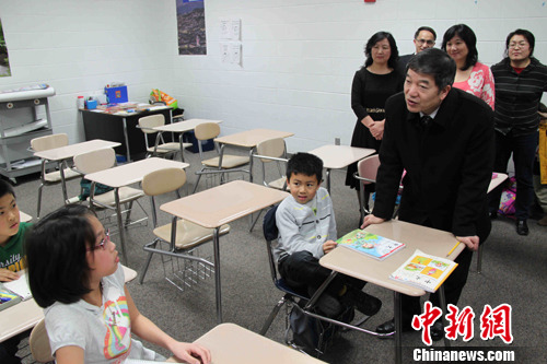 参与互动(0) 当地时间2月5日,中国国务院侨办副主任任启亮视察芝加哥最大中文学校之一——瑞华中文学校,了解学校办学情况,与学生交流,并为在华文教育事业中表现突出的学校教师颁发海外华文教师优秀奖。中新社记者 李洋 摄