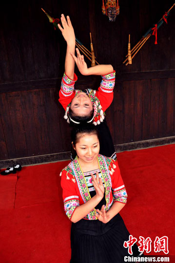 图:广西少数民族艺术团“90”后队员的幕后训练(3)