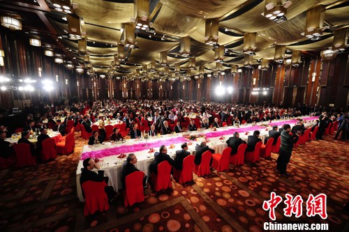参与互动(0) 4月9日晚间,国务院侨务办公室设宴款待前来北京参加第六届世界华侨华人社团联谊大会的各界代表。本次大会有来自世界各地110个国家和地区的约570名华侨华人社团负责人出席,会期两天。 中新社发 侯宇 摄