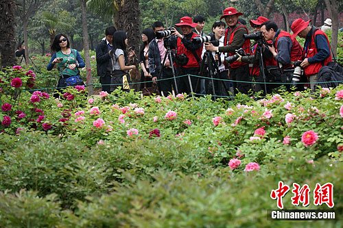 参与互动(0) 4月10日,游客在河南洛阳中国国花园里观赏牡丹、拍摄牡丹,与牡丹合影留念。中新社发 徐崇德 摄