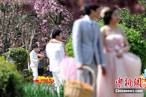 西安春来花意浓 新人“扎堆儿”拍婚纱(4)
