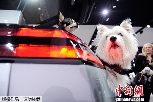 纽约车展商家出高招 狗狗当车模宣传汽车安全性(4)