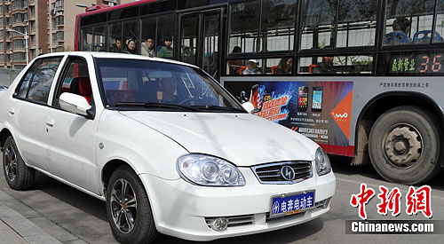 参与互动(0) 4月12日,河北石家庄市民申世星驾驶着自造的第三代电动汽车外出。中新社发 翟羽佳 摄