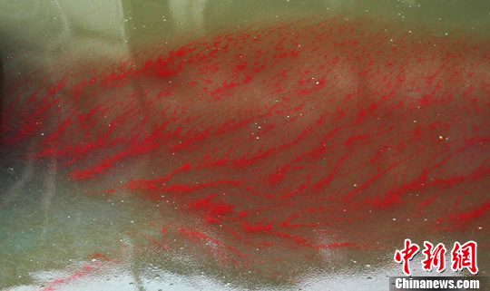 参与互动(0) 2012年4月12日,在浙江省温岭市石桥头镇杨家里桥头附近的水面上漂浮着一张张“美丽”且会游动组合的“油彩画”。原来这里近期旺发了一大片水虱,把河面染成了一道道红色的线条,吸引了过路人驻足观看。江勇兵 摄 图片来源:东方IC 版权作品 请勿转载