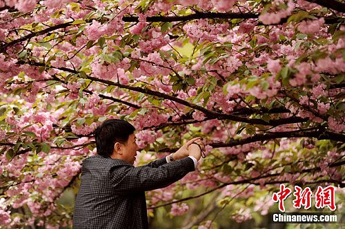 西安樱花烂漫游人流连忘返