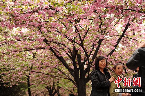 参与互动(0) 4月12日,位于西安市青龙寺内的樱花绚烂盛开,前来观赏的游人络绎不绝,成为西安春天的一道靓丽风景线。图为寺内合影留念的市民。图为寺内赏花的市民。张远 摄