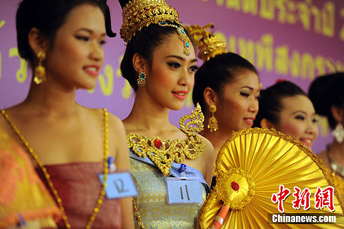 图为泰国留学生进行选美比赛。中新社发 任东 摄