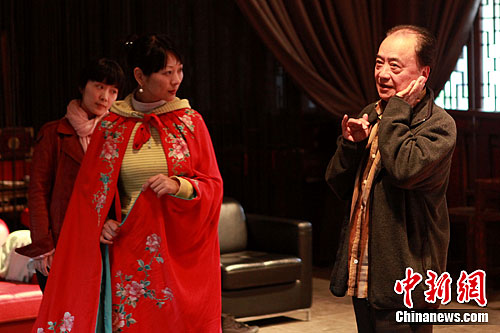 参与互动(0) 4月12日,昆曲名家汪世瑜在苏州昆剧传习所内悉心指导俞玖林等排演《南西厢》。图为昆曲名家汪世瑜为朱璎媛(饰崔莺莺)示范眼神与手势。中新社发 李克祥 摄