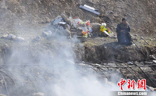 参与互动(0) 2012年4月14日,青海省玉树县民众走上结古镇东德隆钦山下的扎西大同天葬台,用煨桑、转经筒、献花等方式来祭奠逝去的亲人。两年前,玉树发生7.1级地震,造成两千多人遇难。杨艳敏 摄